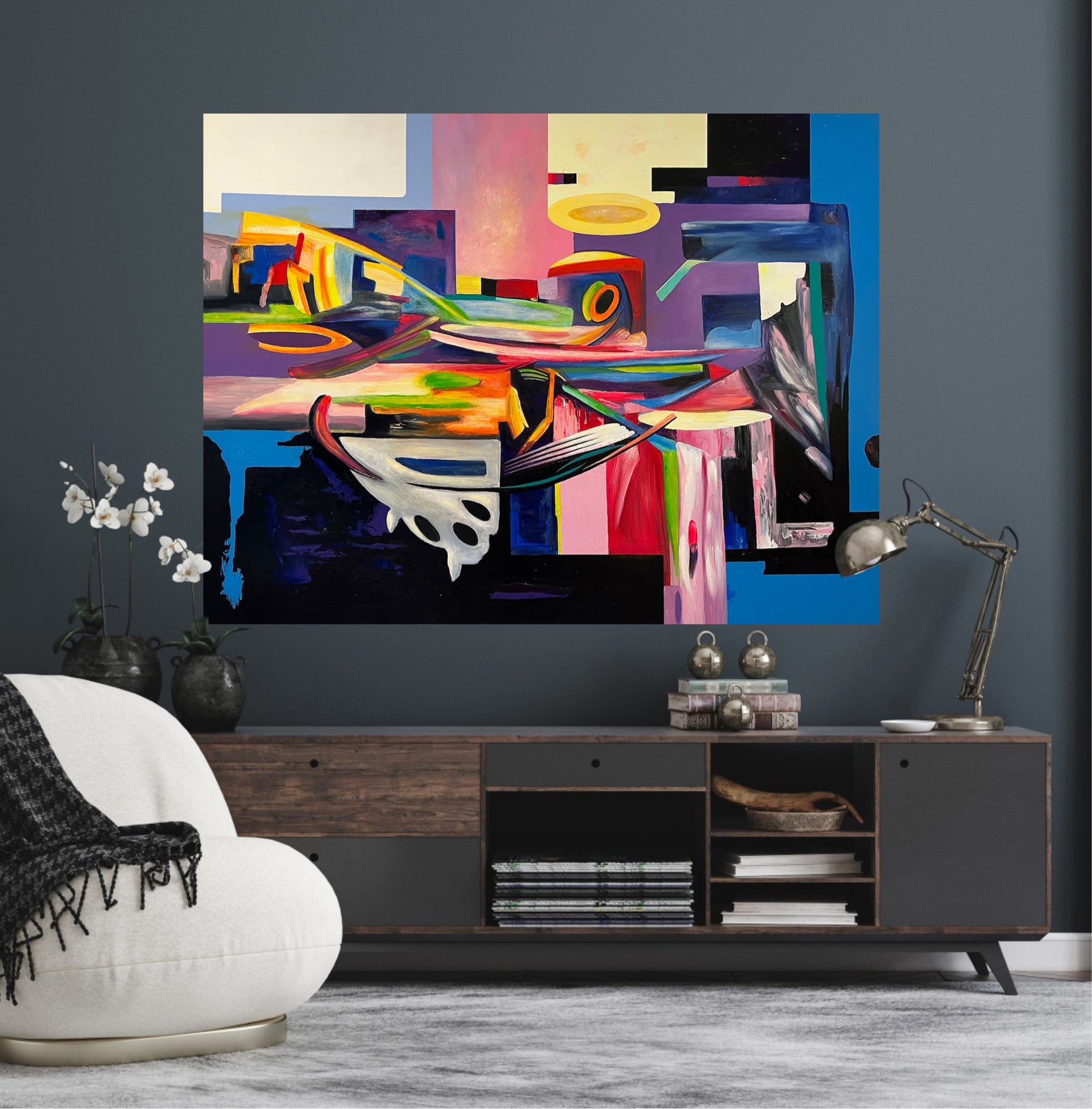 Our original abstract art paintings for sale by Icelandic, Georgian, Armenian, and American artists.  Each artwork can also be ordered as either a metal or canvas print.  All original paintings are professionally framed and ready to be hung.