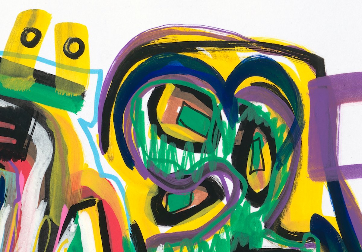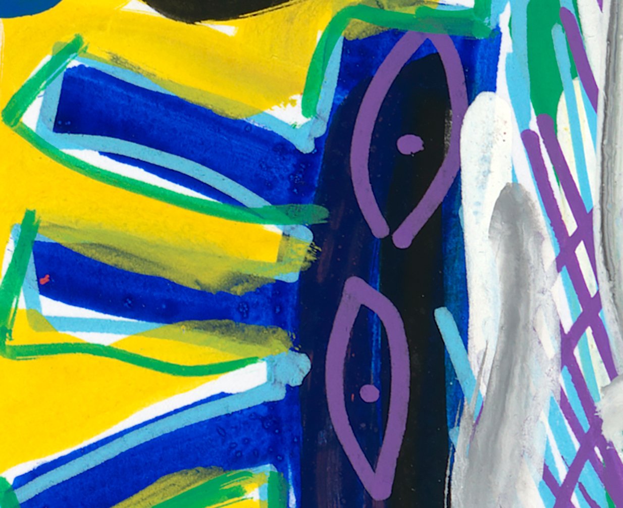 Neo expressionist art for sale by Chuchin Gutierrez from Chile, acrylic on canvas. Colorful abstract portrait. Details