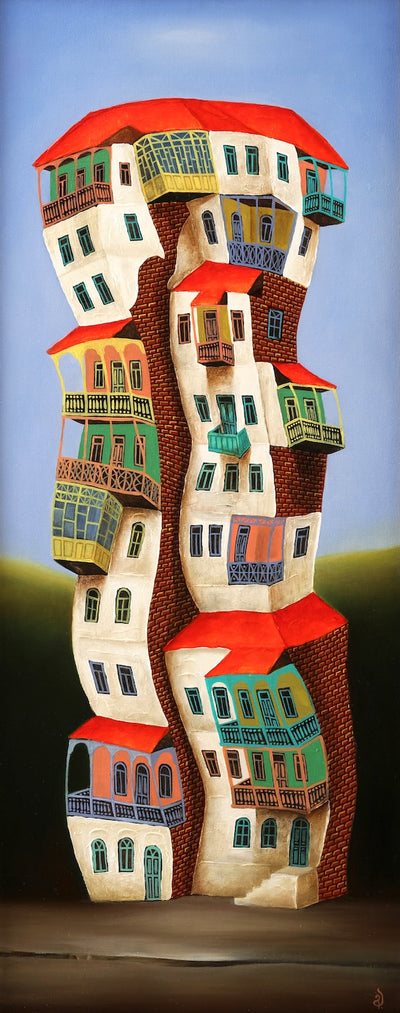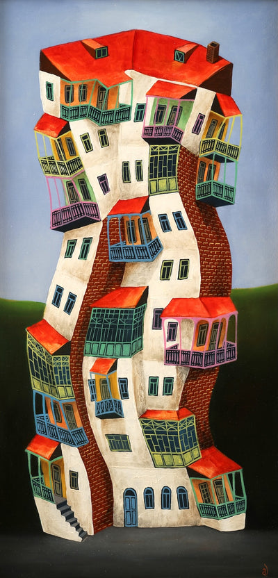 George Abramidze is a talented and innovative artist from Tbilisi, Georgia. From dancing houses to his amazing collages made out of regular everyday objects, he makes things around him come ALIVE! Ordinary houses have emotions, have friends, have bad days, have cracks and scars, can dance and lean, can drink and befriend other houses, yet still hold their form.