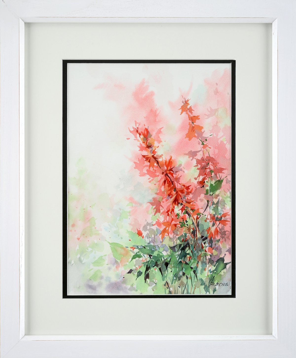 Watercolor garden art for sale by Inna Petrashkevich from Belarus. Salvia September Fire. Framed