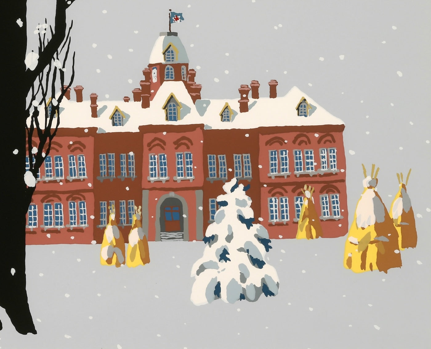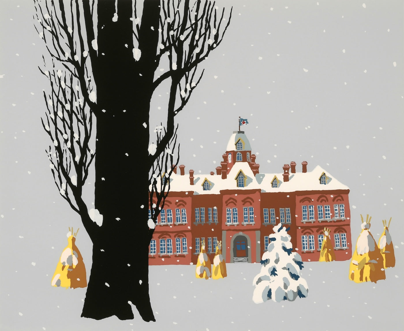He received numerous awards, including the Grand Prix at the World Tourism Poster Contest, the Sapporo Citizen Art Award, the Hokkaido Cultural Award, and the Fifth Class of the Order of the Rising Sun, Gold and Silver Rays. His designs are still seen in life in Sapporo, such as the design on the walls of the subway and that of the drop curtain in the Sapporo Citizens Hall (today’s Wakuwaku Holiday Hall).