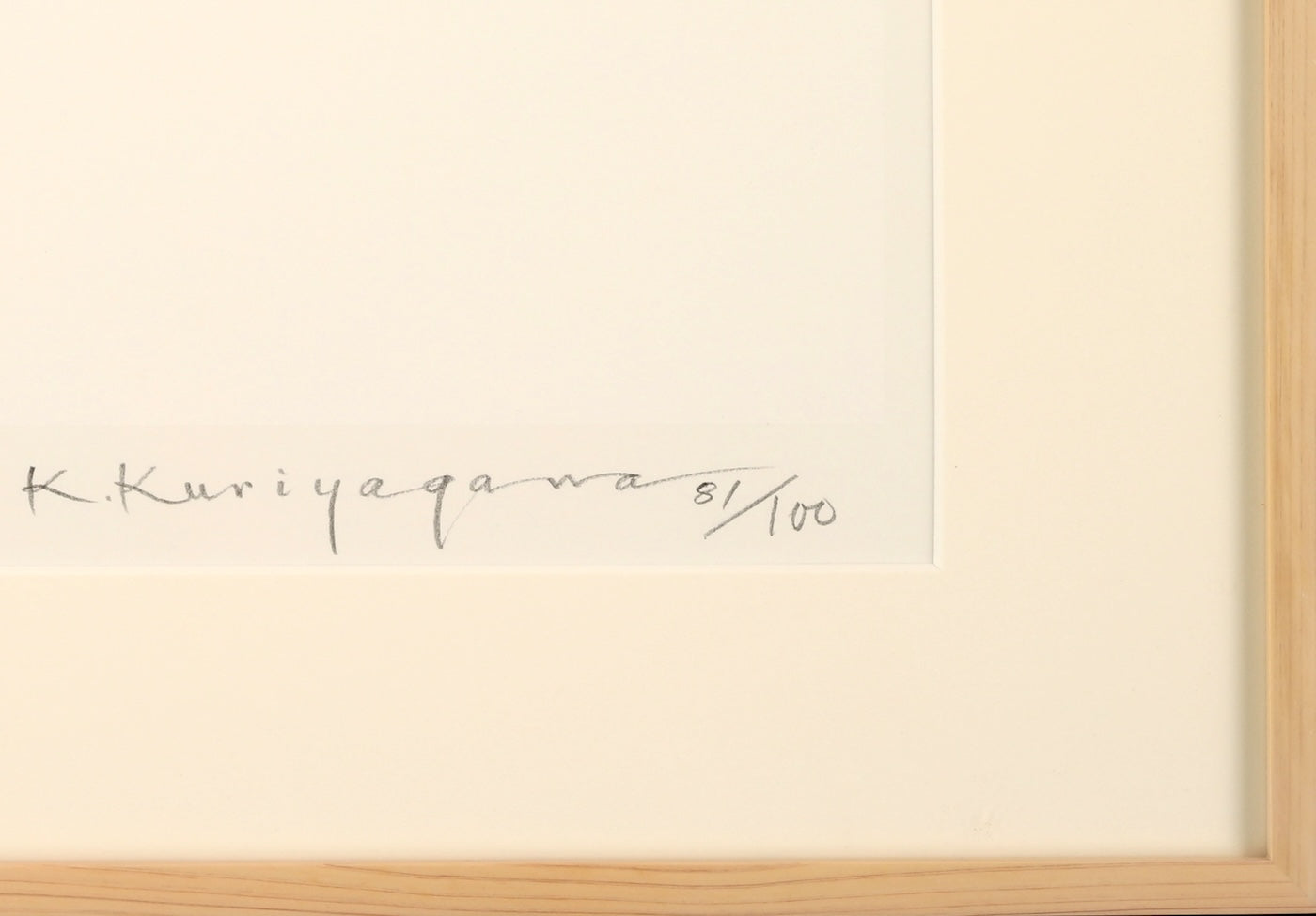 Close-up of Kenichi Kuriyagawa's signature on a limited edition print 81/100, showcasing Japanese artwork.