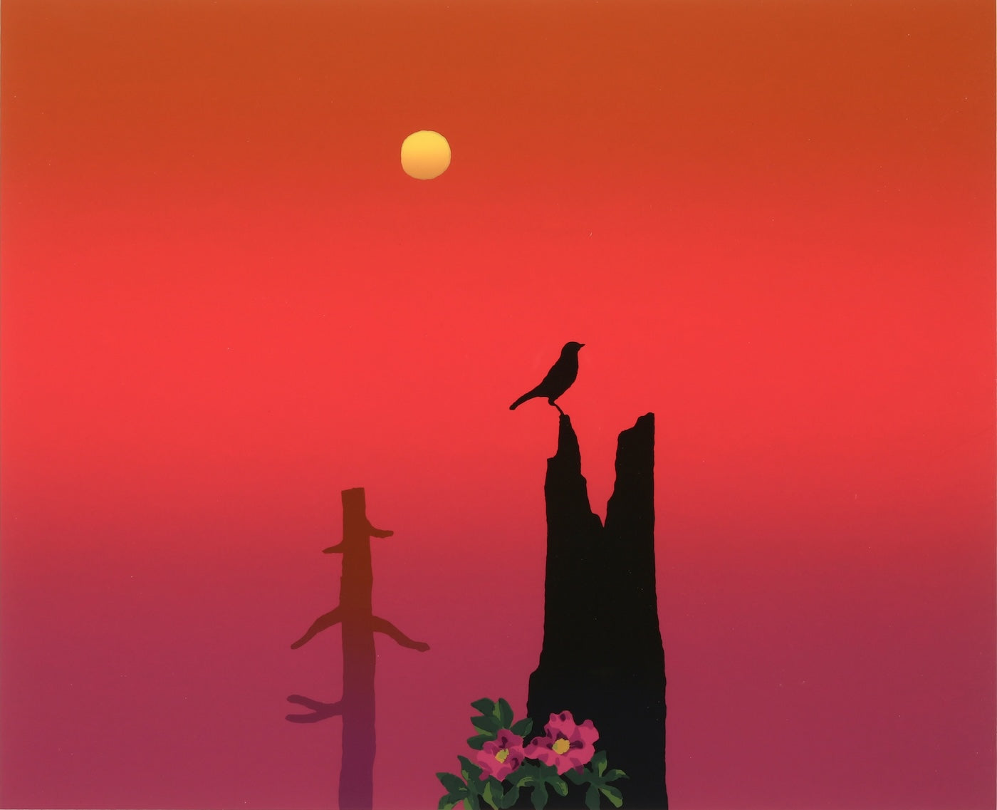 Todohara Sad (Notsuke Peninsula) - Japanese landscape artwork featuring a silhouetted bird at sunset.