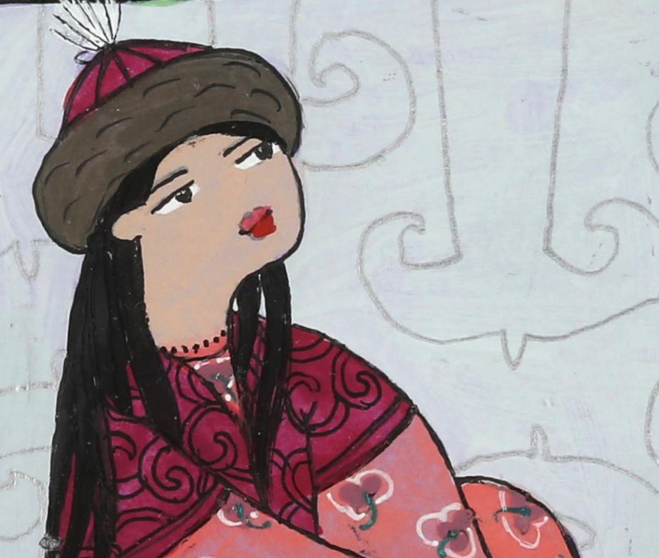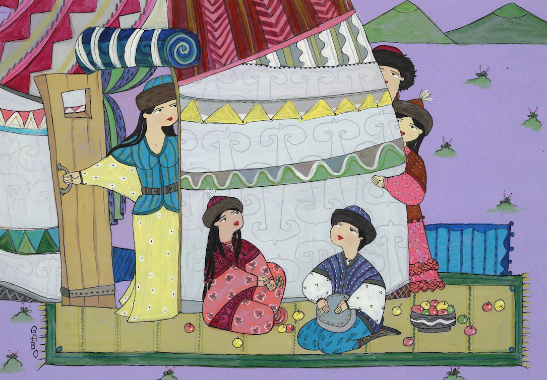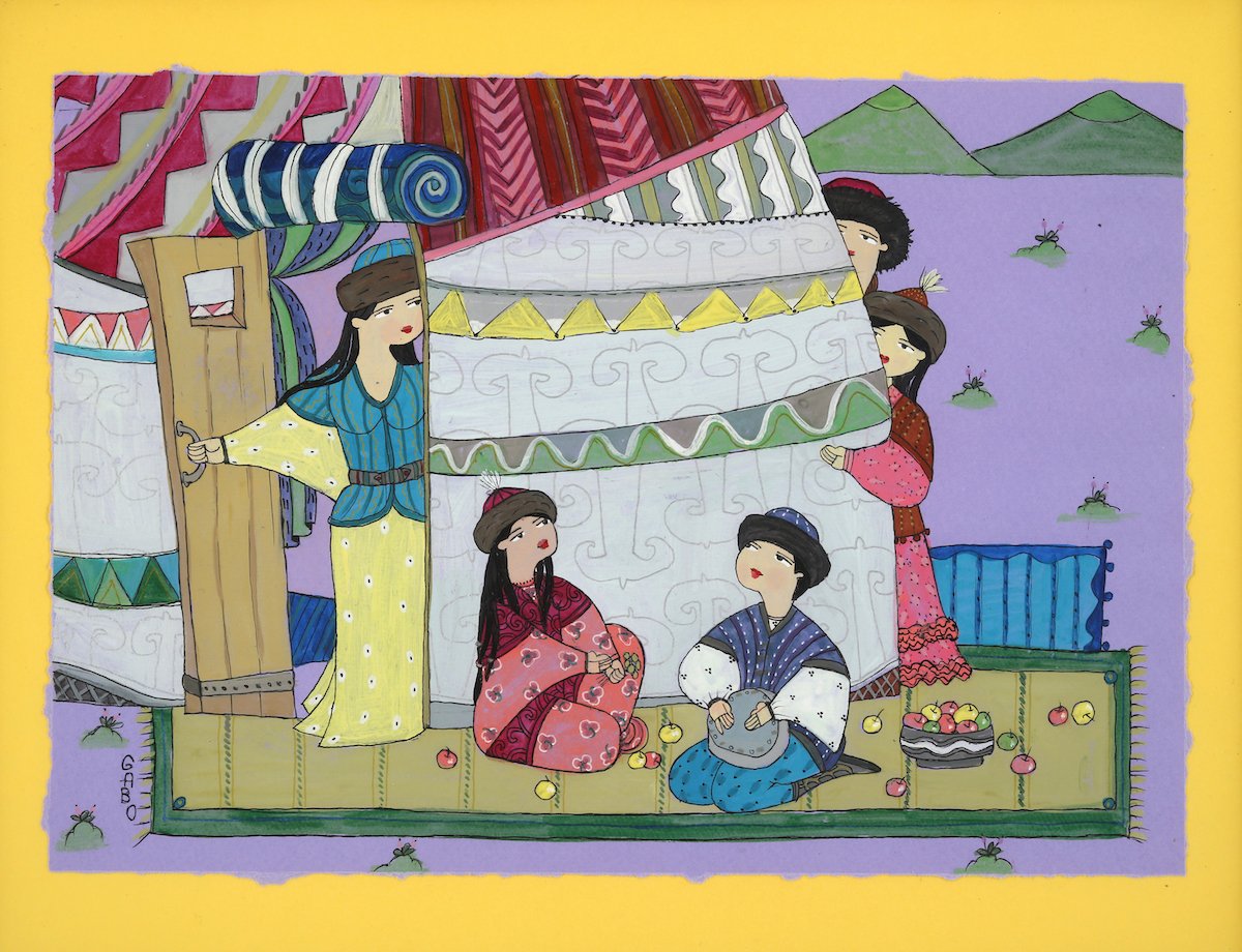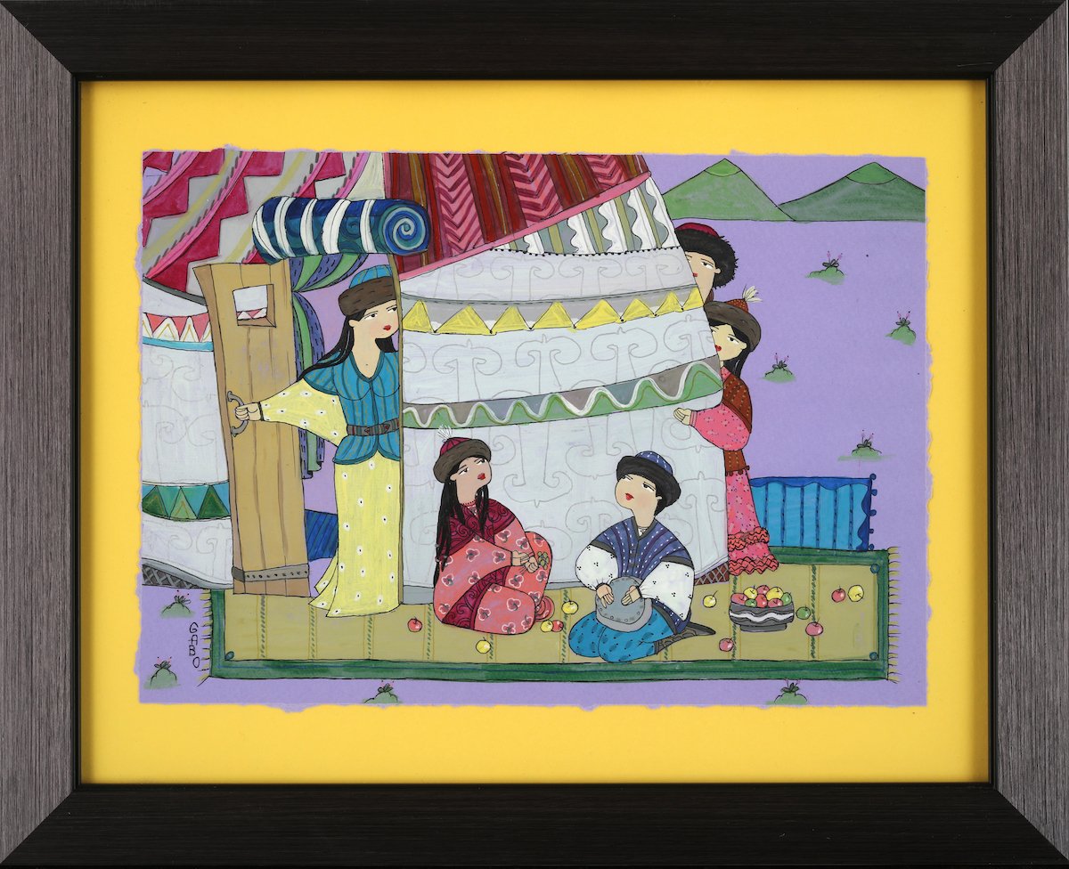 Kazakh Art. Original Kazakh paintings for sale. Waiting for guests by GaBo Kussainov at Art House SF. Pastel on paper