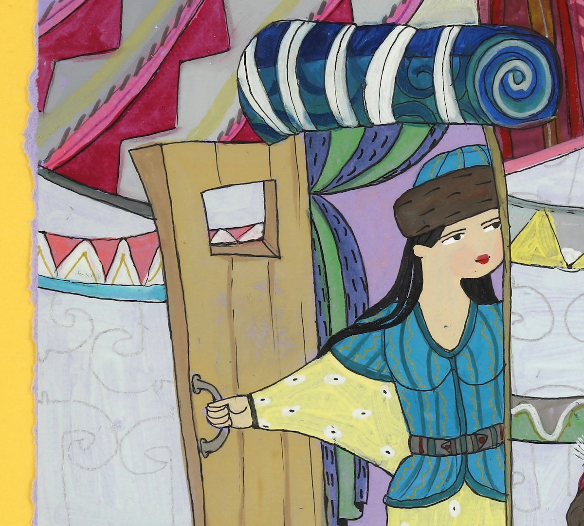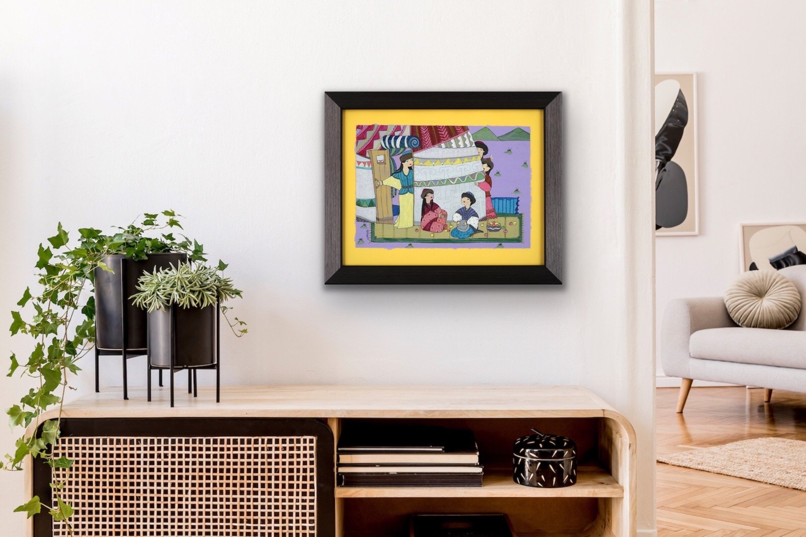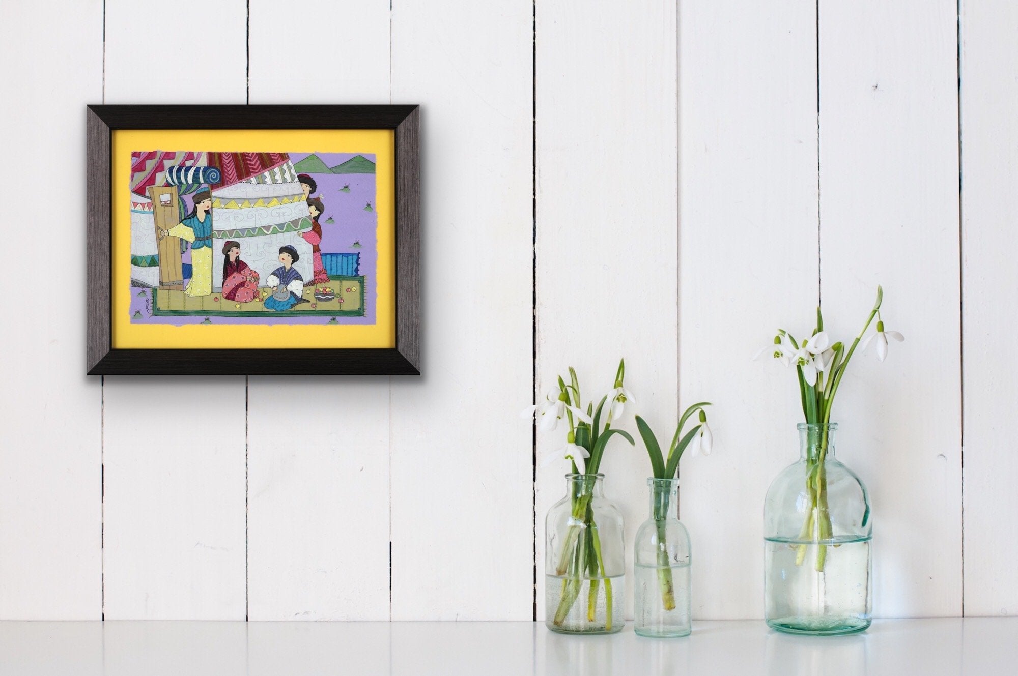 Kazakh Art. Original Kazakh paintings for sale. Waiting for guests by GaBo Kussainov at Art House SF. Pastel on paper