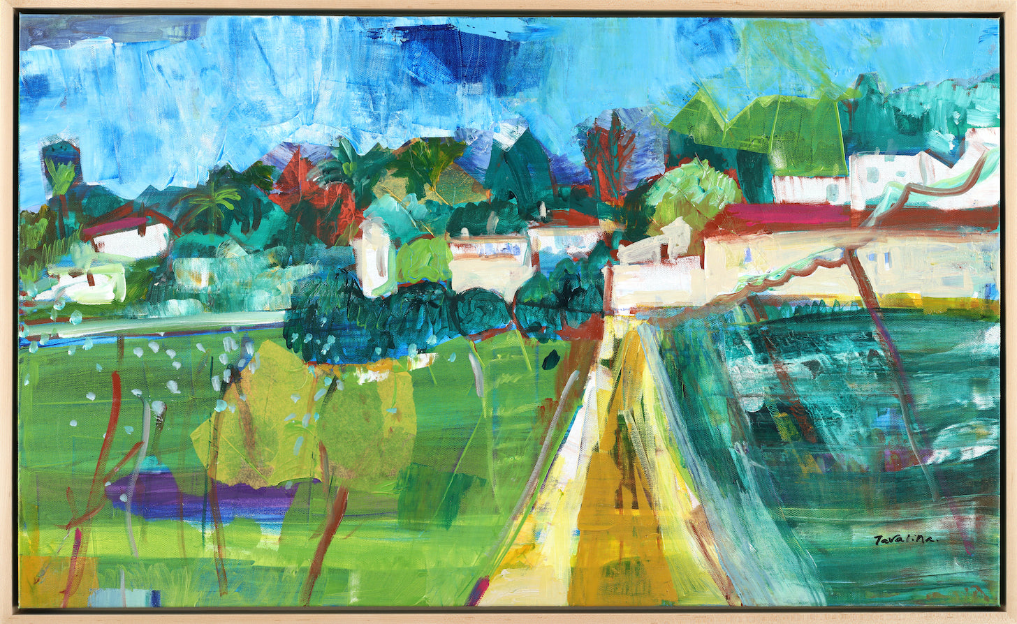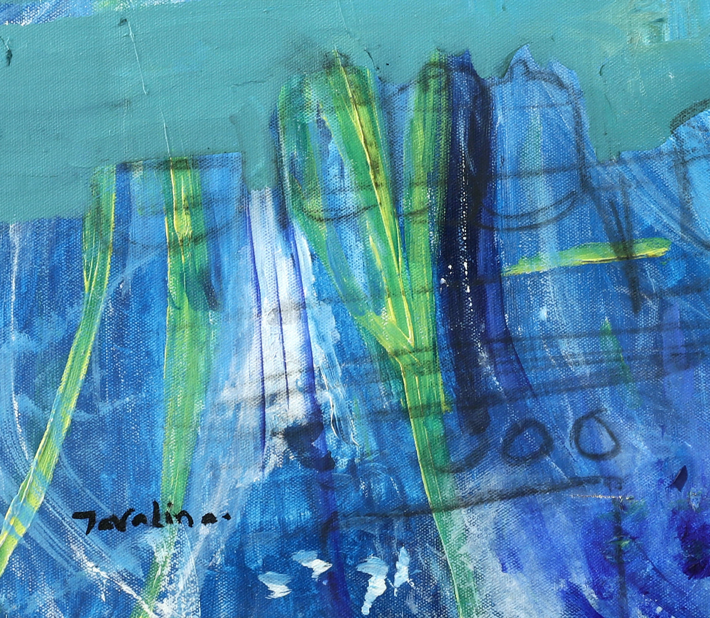 The paintings are constructed in layers, in a constant movement of exploration on the edge of a cliff. I try to find in me the consent to get lost, to meet the unknown, to destroy --- then appear discovery and surprise, and the finished paintings are vivid and full of energy.