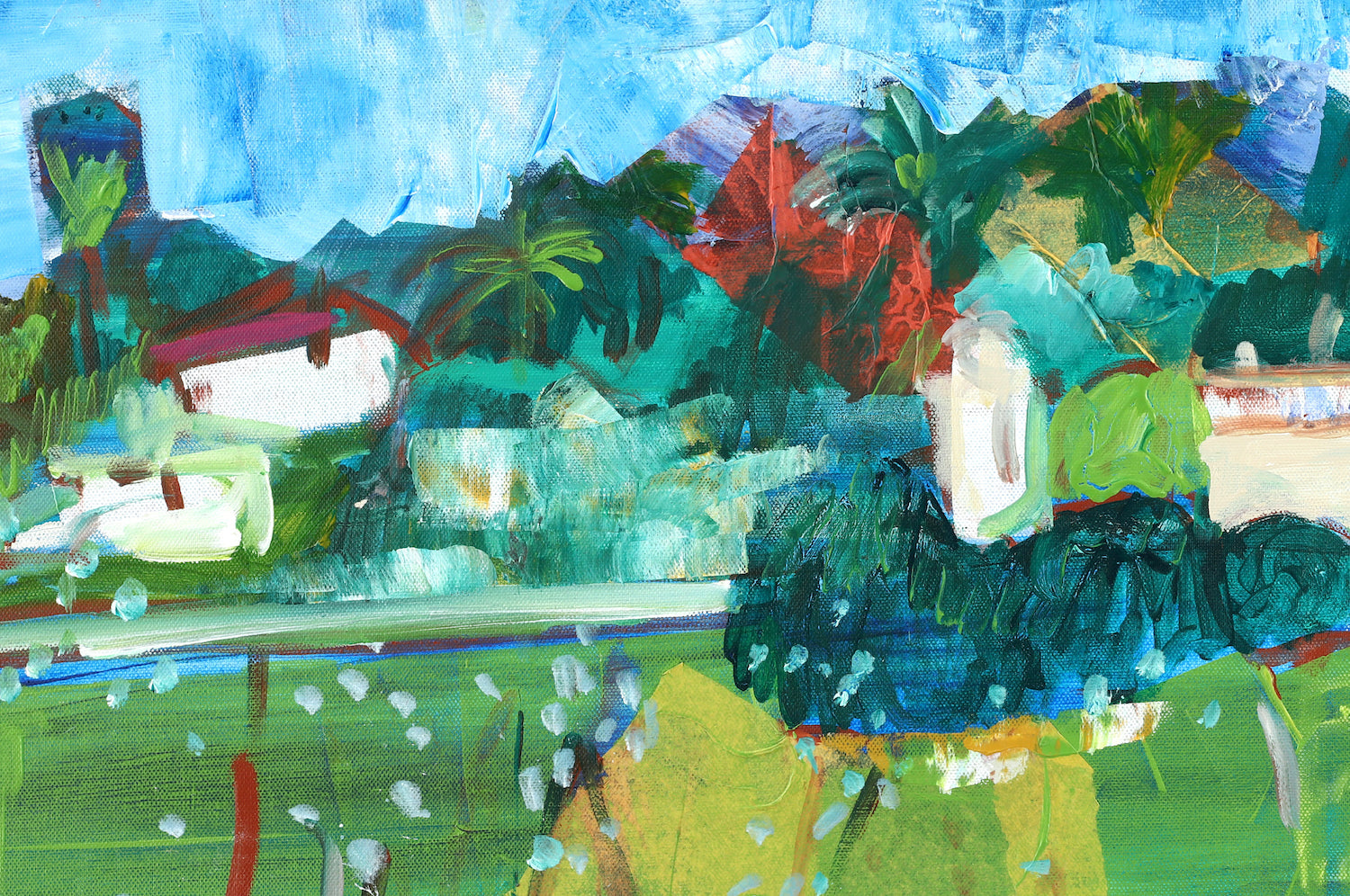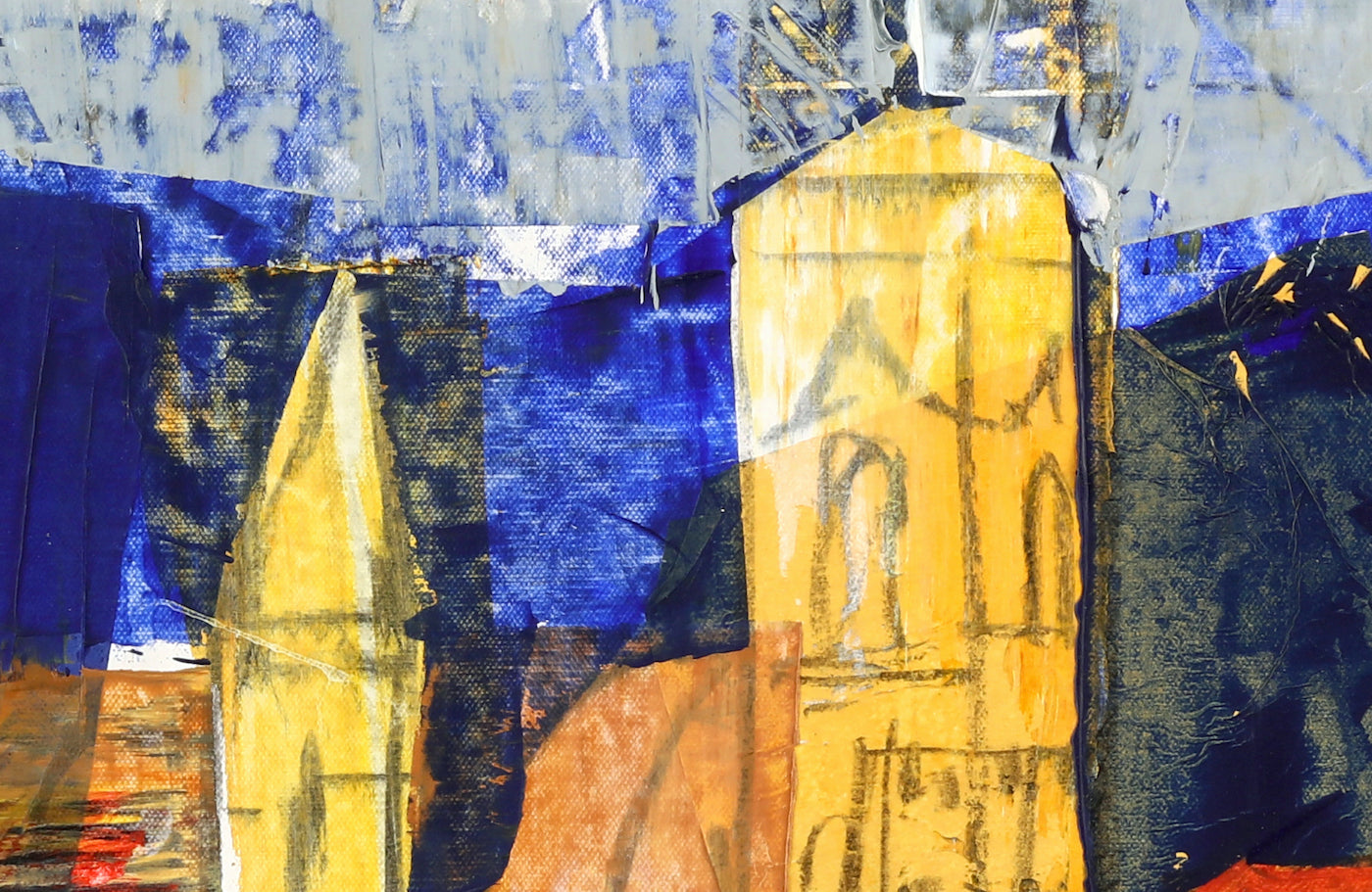 The paintings are very colorful. I love the power of color, and my creative process alternates between different contrasts – spontaneous vs. exact work, cold vs. warm colors, fast vs. slow, opaque vs. transparent, and a constructive vs. destructive process. Gradually I search for a new balance, a new order.