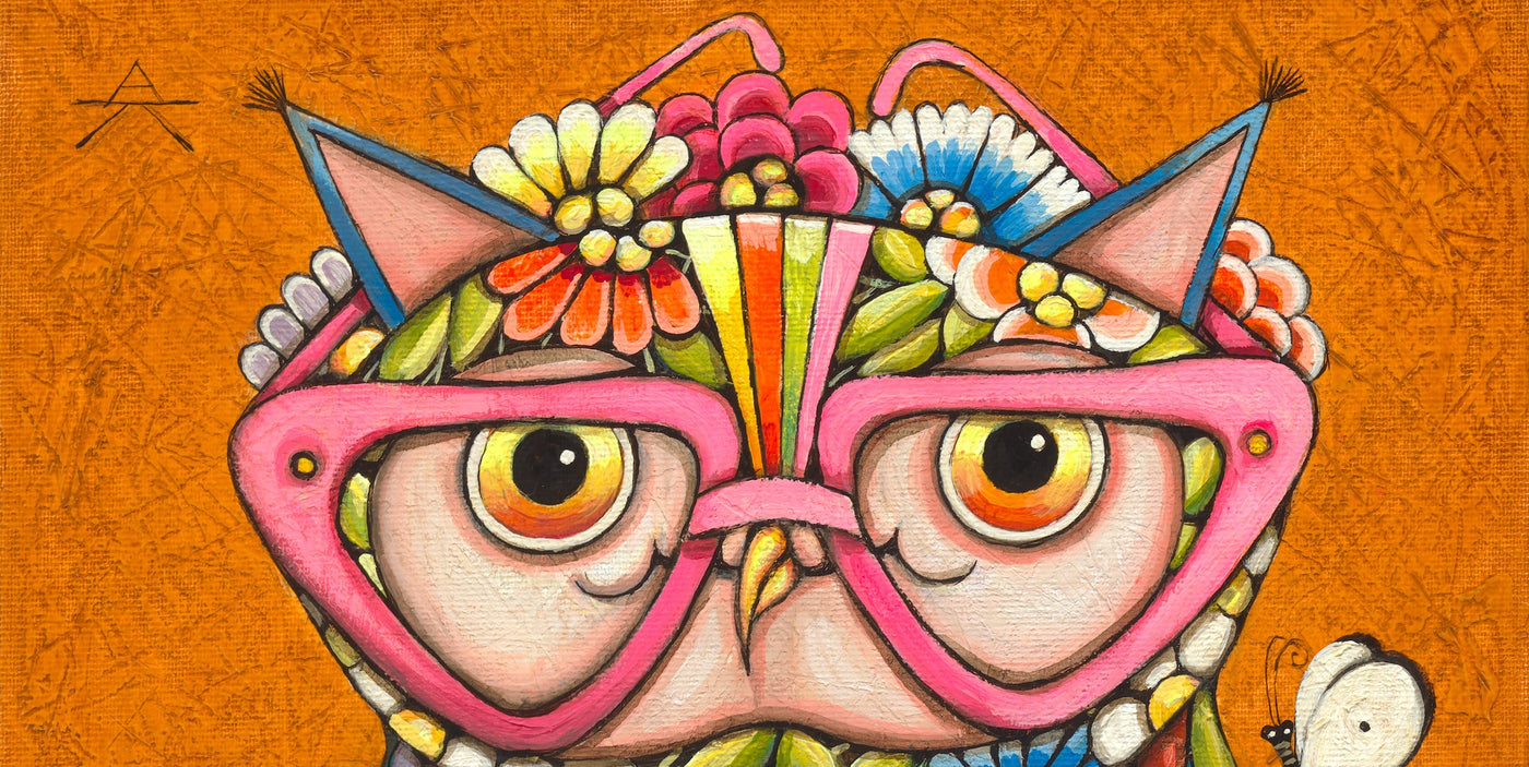In her work, she synthesizes the traditions of Ukrainian folk art and elements of naive art with a modern artistic eye, expanding the boundaries of her personal creative space, and populating it with cute and colorful characters - pet hedgehogs, dreamy floral cats, wandering sea cows, harvest hens, and spotted owls.
