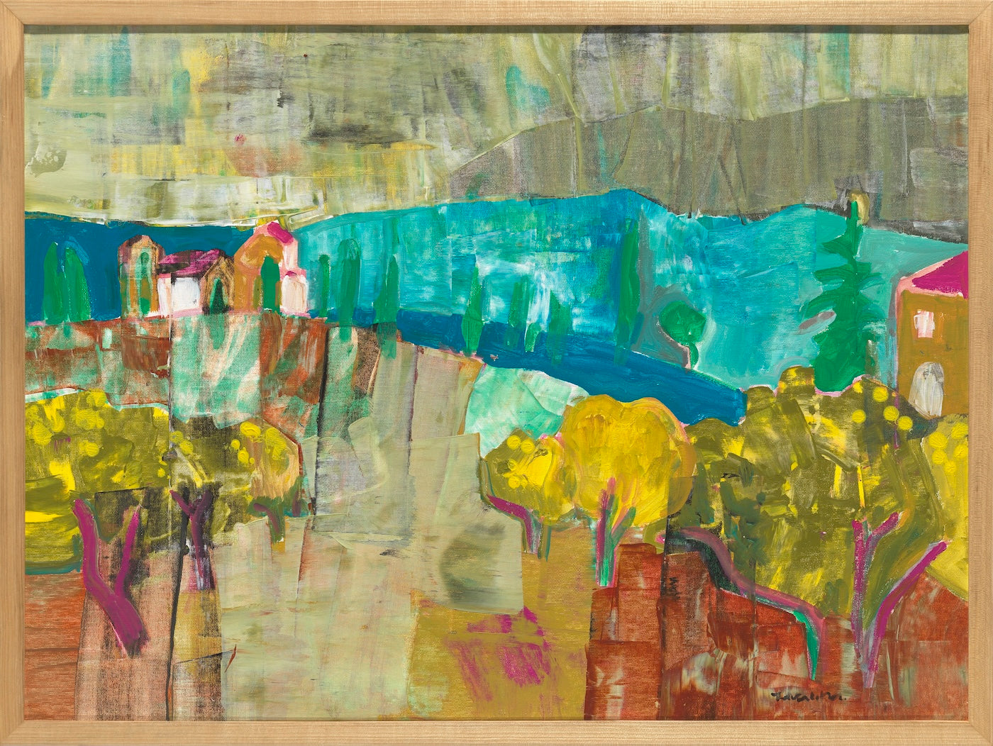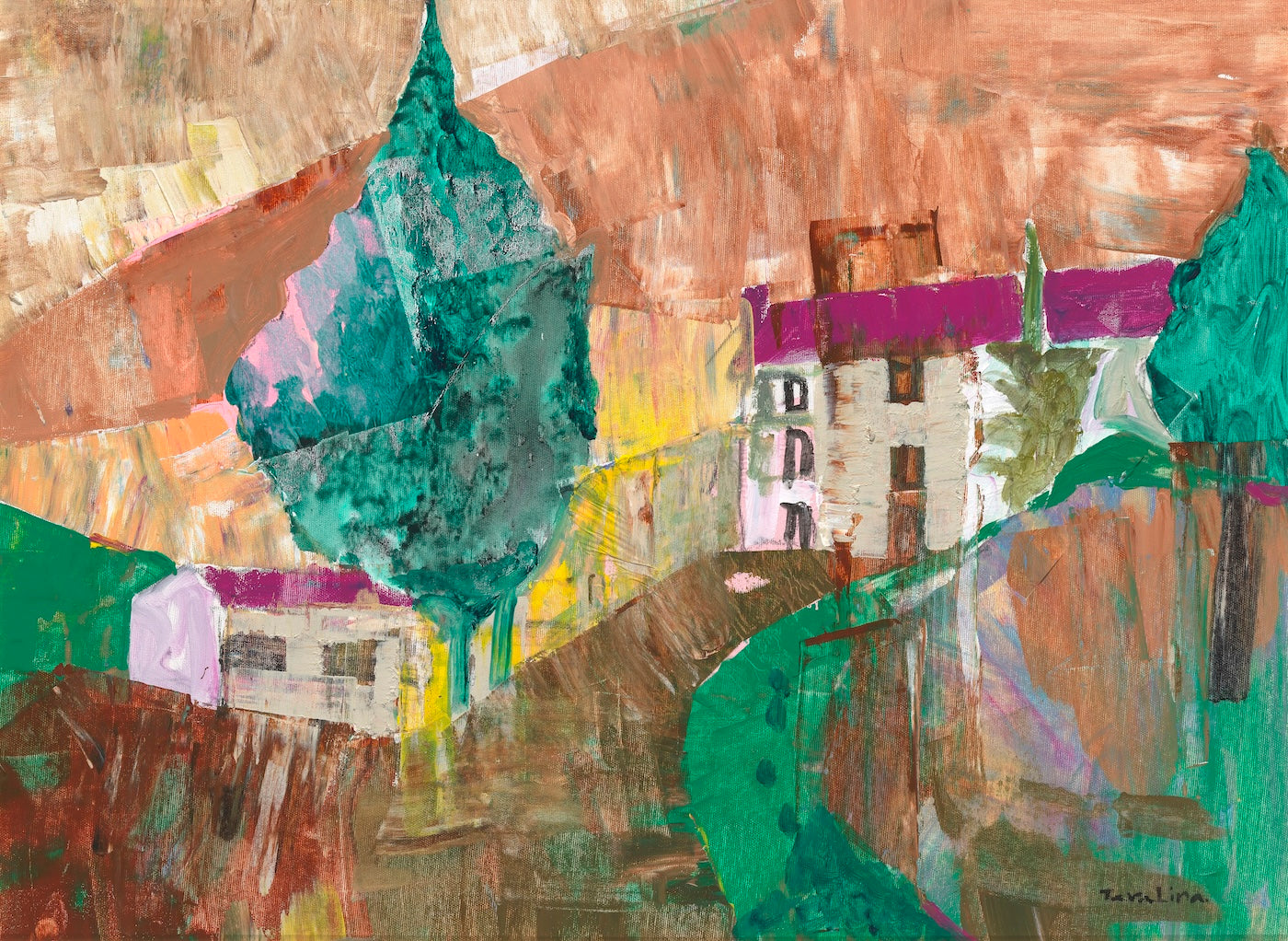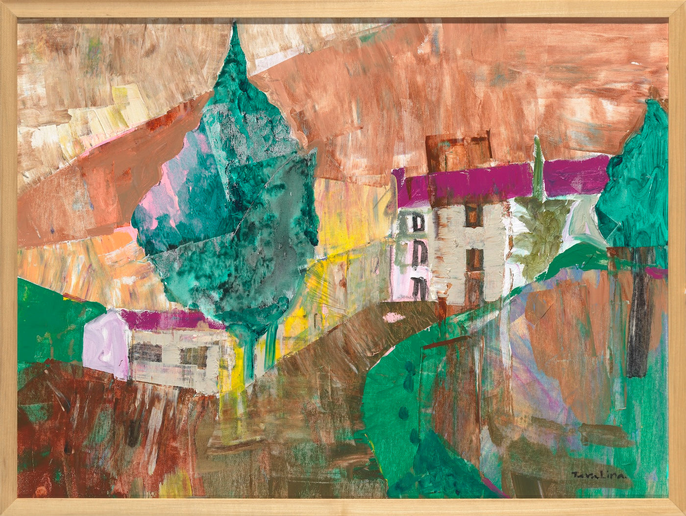 A painter known for her rich use of bold color, Tavalina achieves a remarkably different effect with a more restrained palette, as shown in this canvas.