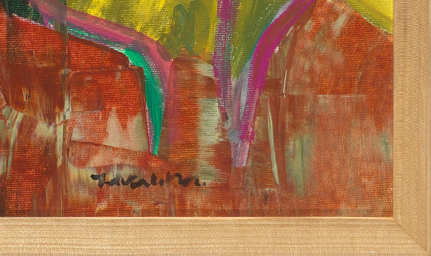 Those feelings are clearly expressed in this canvas: disjointed blocks of contrasting colors are initially startling, and then - as the viewer’s eye grows more comfortable - harmonious.