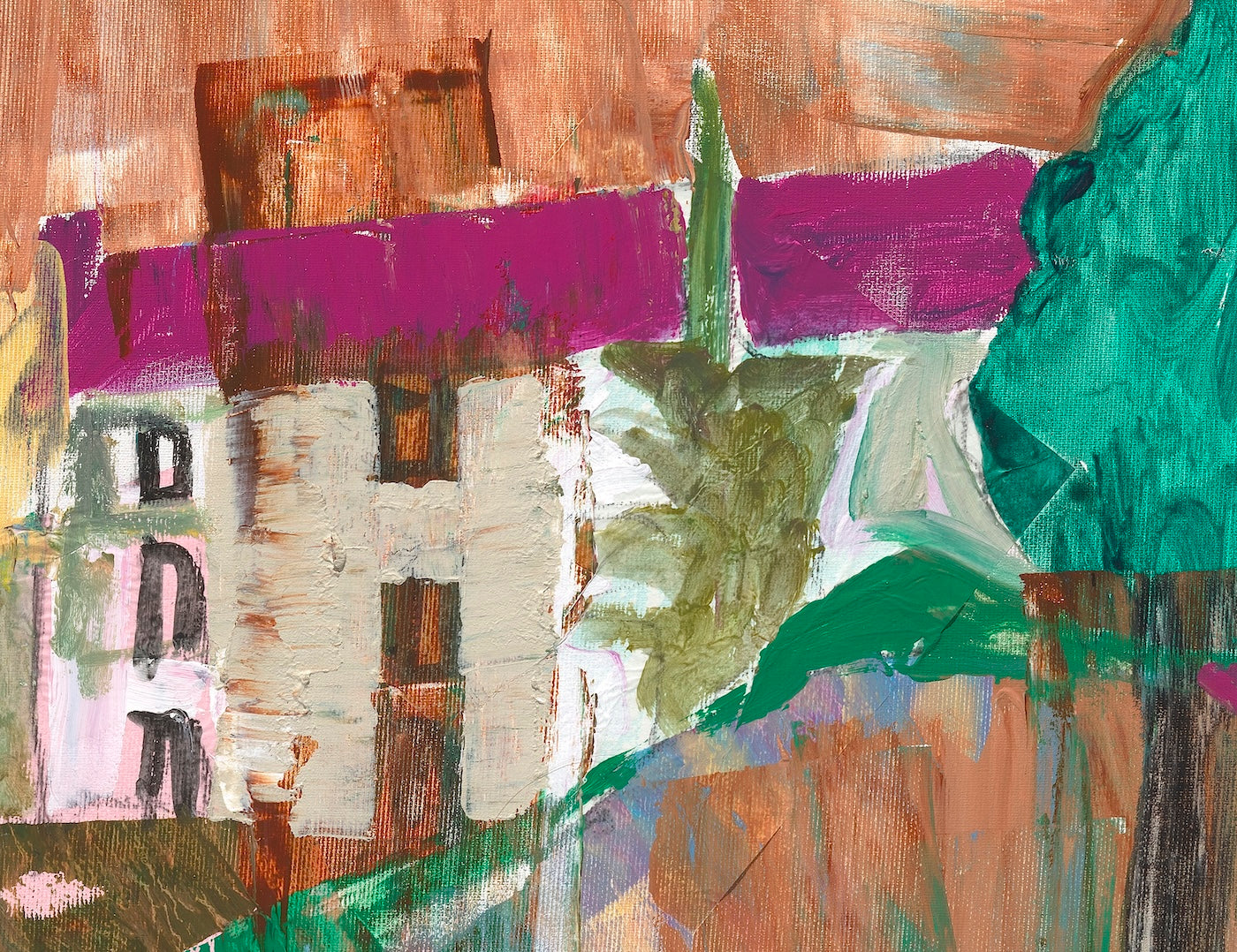 Tavalina’s architectural training gives her an unusual and valuable vantage point as a painter; her intuitive understanding of the built environment allows her to “sketch” in vivid detail with her palette knife the diversity of the buildings around her.