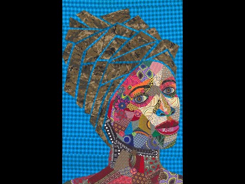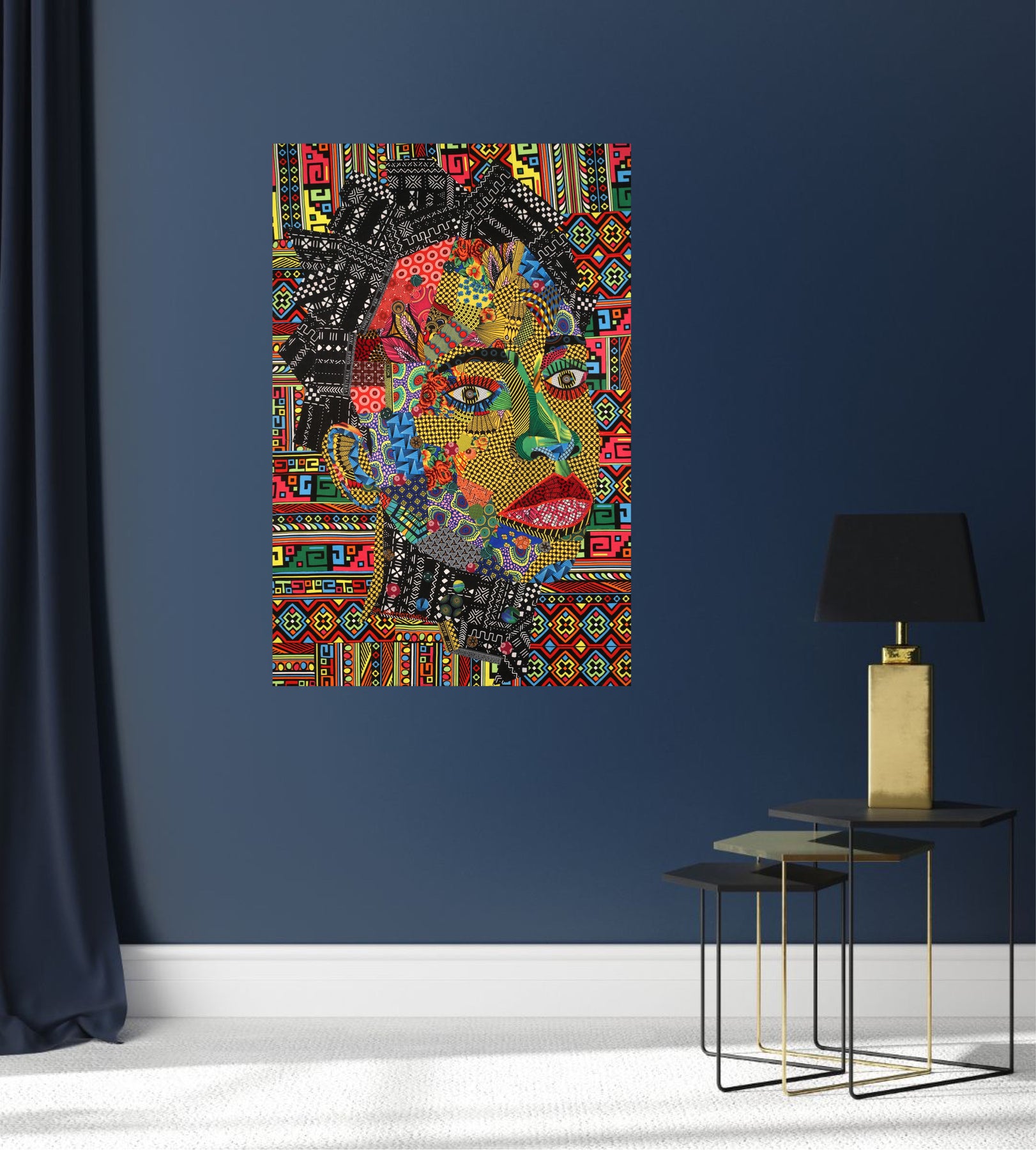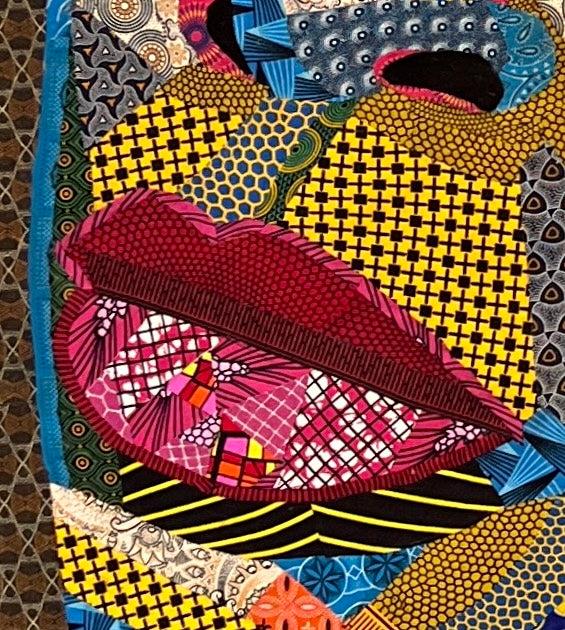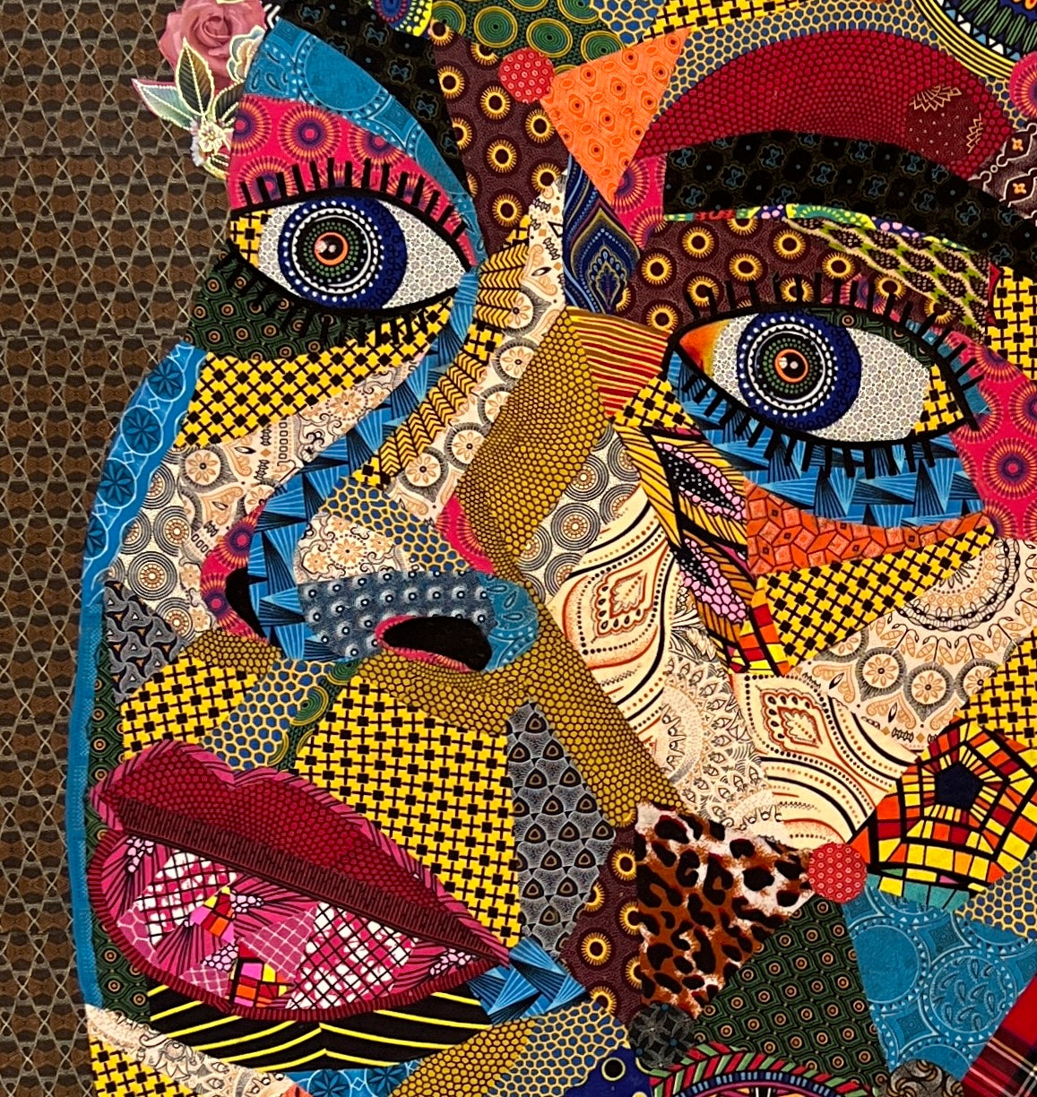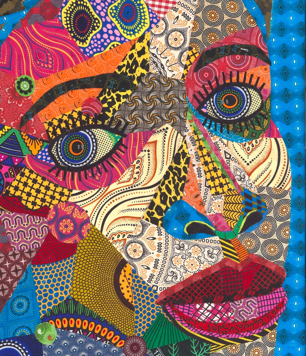 For his artwork, Splash collects fabric from different tribes and cultures in Africa. He then cuts them out in a unique mosaic fashion and glues them to canvas. Each portrait is created from hundreds of oddly shaped pieces of patterned fabric.