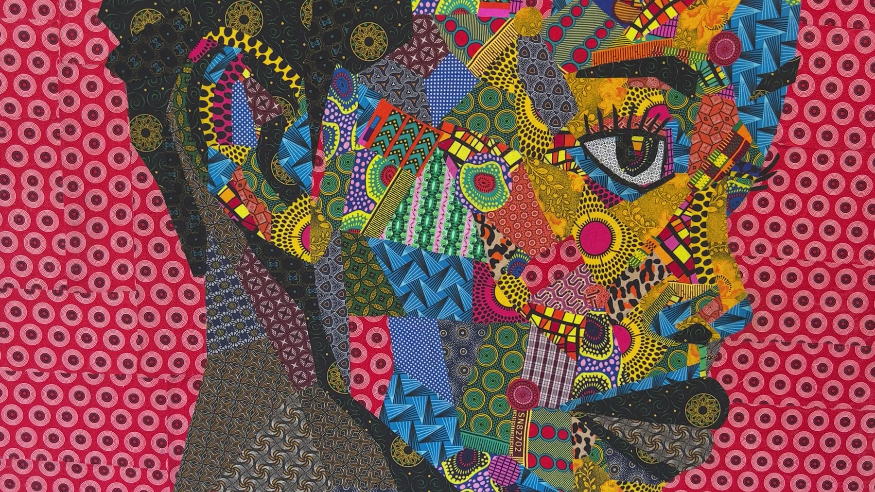 Tsholo "Splash" Motong extensively uses traditional African fabric in his artwork.