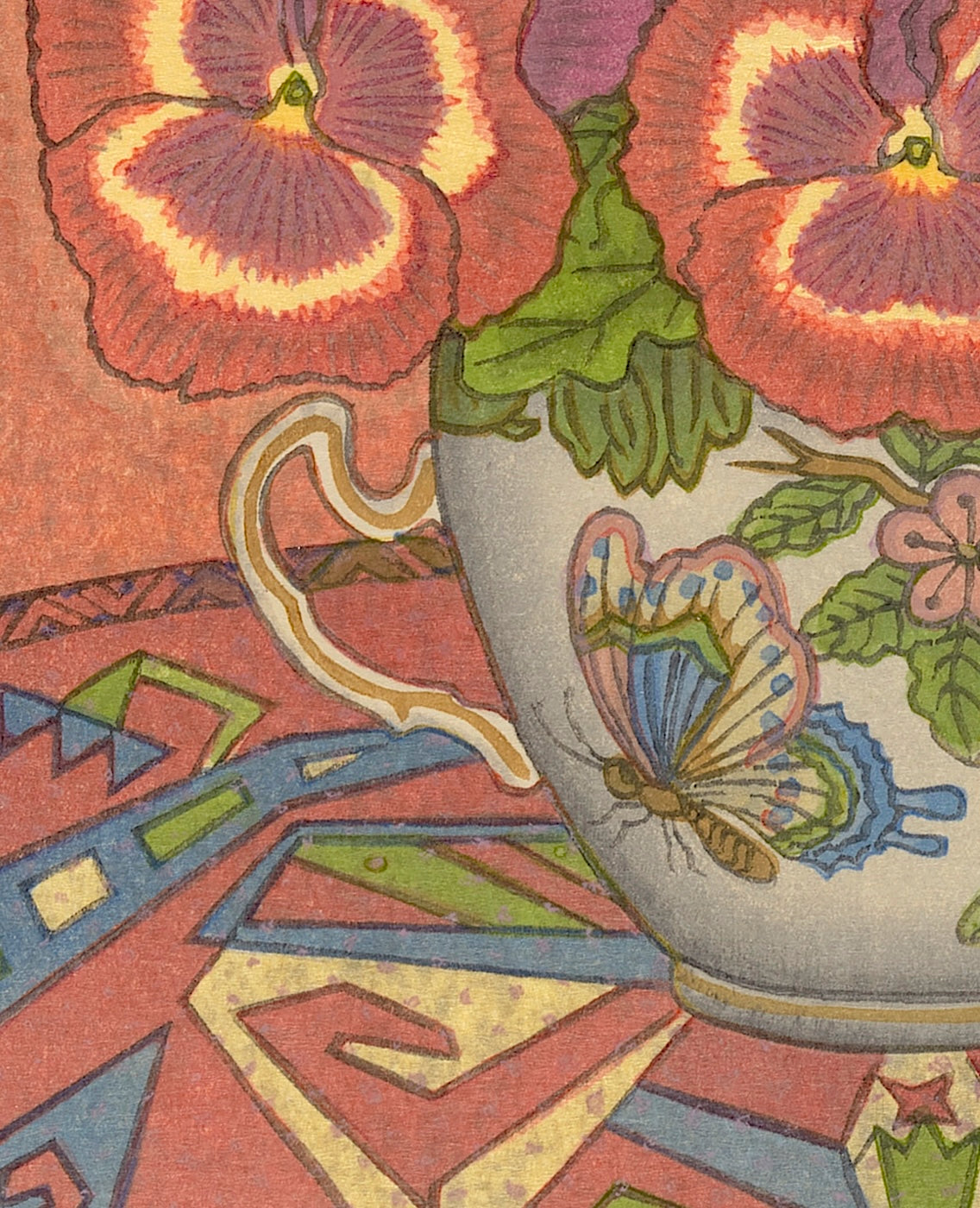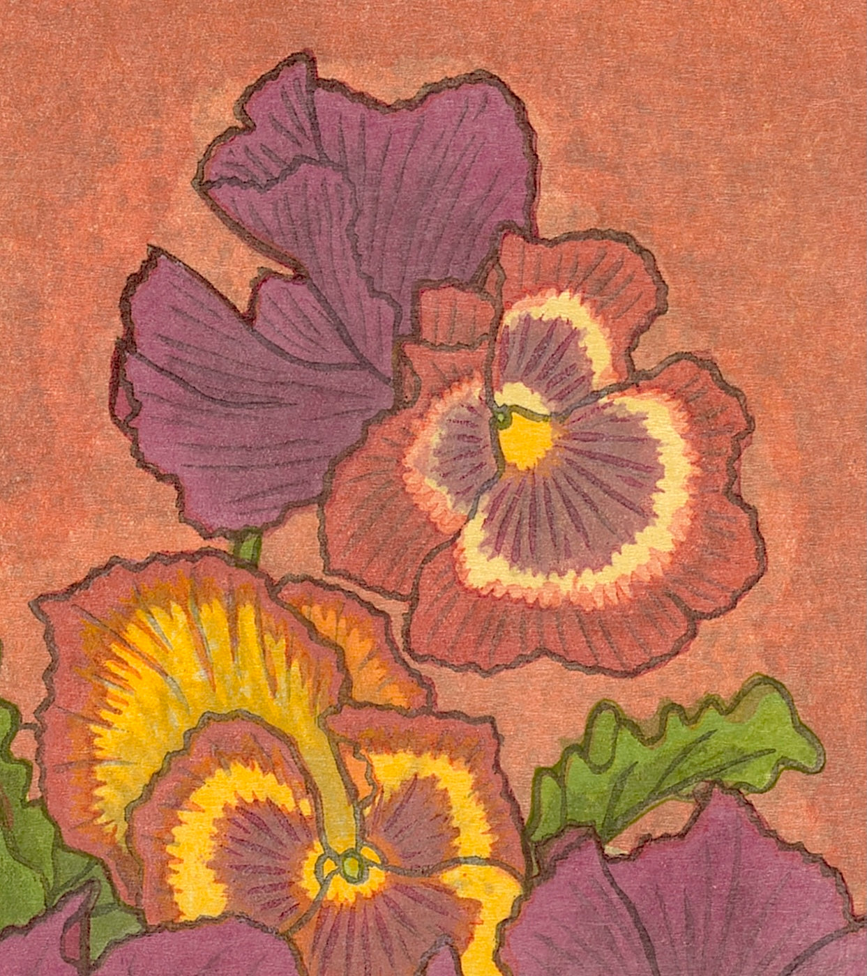 Pansies symbolize 思い (omoi) or 物思い (mono-omoi) — “thoughts,” “deep thought,” or “a person who is often on your mind.”