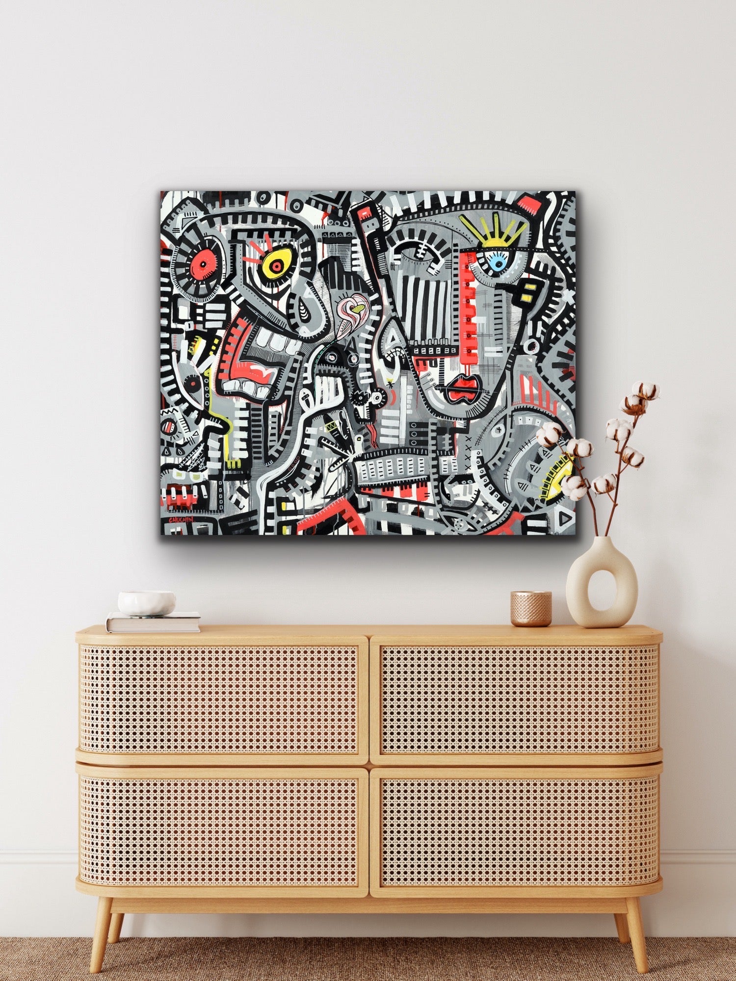 Chuchin Gutierrez is a contemporary Columbian-born artist who lives and works in Requinoa, Chile. Chuchin defines his art as Neo-Expressionism, Marginales Art, and Art Brutal.